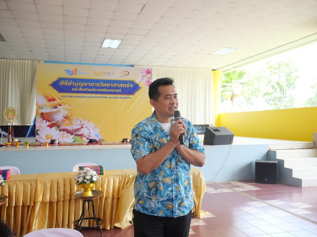 เข้าร่วมกิจกรรม “ทำบุญอาคารและสืบสานประเพณีสงกรานต์” ซึ่งจัดโดยคณะวิทยาศาสตร์และนวัตกรรมดิจิทัล ณ วันจันทร์ที่ 20 เมษายน 2569 เวลา 09.30 – 13.00 น. ณ ลานกิจกรรม SC2 โดยมี ผู้ช่วยศาสตราจารย์ ดร.นพมาศ ปักเข็ม คณบดีคณะวิทยาศาสตร์และนวัตกรรมดิจิทัล พร้อมด้วยคณาจารย์และบุคลากรจากทั้งภายในและภายนอกคณะ เข้าร่วมกิจกรรมอย่างพร้อมเพรียง โดยภายในงานจัดให้มีพิธีทำบุญอาคาร เพื่อความเป็นสิริมงคลแก่หน่วยงาน และพิธีรดน้ำดำหัว เนื่องในโอกาสเทศกาลปีใหม่ไทย อันเป็นการสืบสานวัฒนธรรมและประเพณีอันดีงามของไทย บรรยากาศภายในงานเต็มไปด้วยความอบอุ่น เป็นกันเอง และสะท้อนถึงความร่วมมืออันดีระหว่างคณะ เสริมสร้างความสัมพันธ์และความสามัคคีภายในองค์กร กิจกรรมในครั้งนี้นับเป็นอีกหนึ่งโอกาสสำคัญในการร่วมกันอนุรักษ์วัฒนธรรมไทย พร้อมทั้งสร้างขวัญกำลังใจและความผูกพันที่ดีในหน่วยงาน